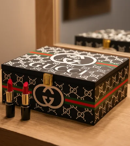 A grand jewelry chest with intricate carvings and ample storage. A statement piece that doubles as home decor.
